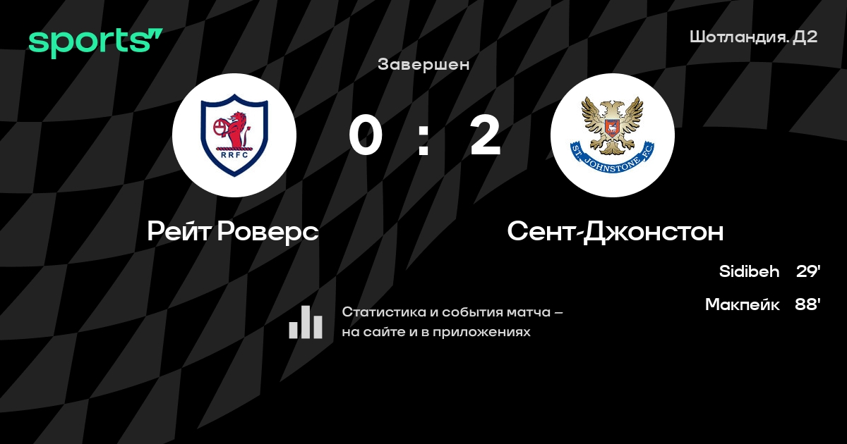 Результат прошлой игры в турнире «Чемпионшип»: Гринок Мортон – Рейт Роверс 0:1. После 5 туров Рейт Роверс набирает 10 очков и занимает 2 место в турнире. Лучший бомбардир команды – Дилан Истон: он забил 9 в 9 матчах. Сент-Джонстон имеет в активе больше всех побед в турнире – 3. В 12 последних матчах в турнире «Чемпионшип» Рейт Роверс обязательно забивает. В последних 5 играх Рейт Роверс забивает 7 голов. В последних 5 играх Рейт Роверс пропускает 4 голов.