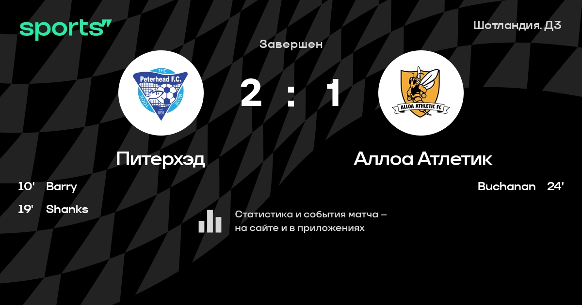 Питерхэд – Аллоа Атлетик: Аллоа Атлетик забивает в 7 последних матчах против этого соперника