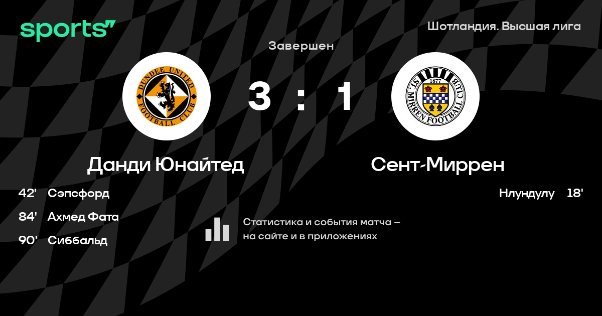 Данди Юнайтед – Сент-Миррен: Данди Юнайтед забивает в 6 из 8 последних матчей против этого соперника