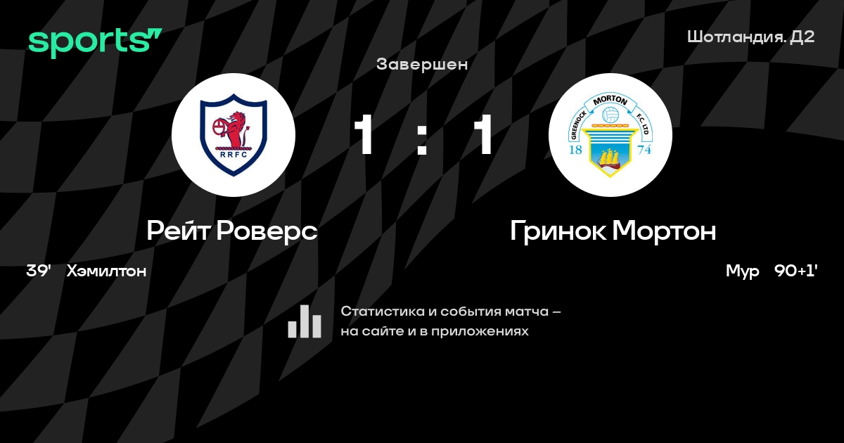 Рейт Роверс – Гринок Мортон: коэффициенты