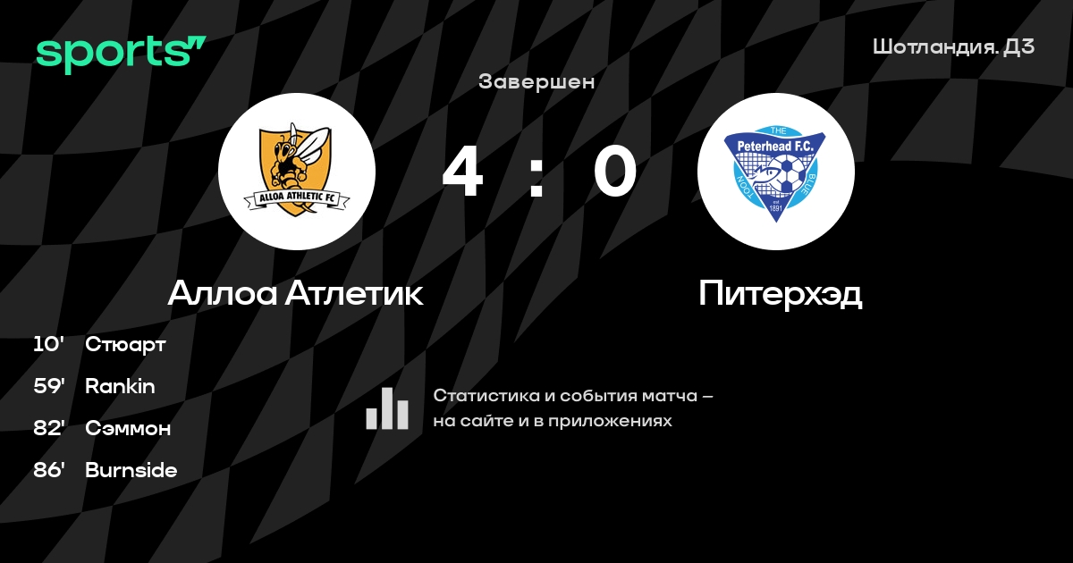 Аллоа Атлетик – Питерхэд: Аллоа Атлетик не пропускает в 0 из 8 последних матчей против этого соперника