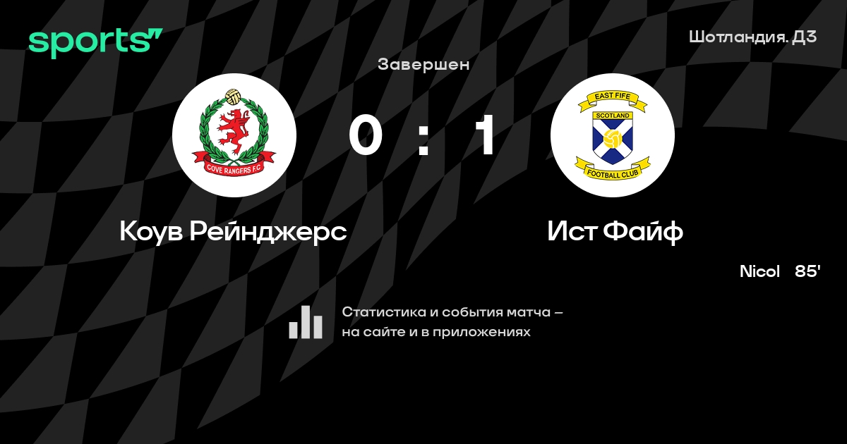 Результат прошлой игры в турнире «Лига 1»: Куин оф Саут – Коув Рейнджерс 1:1. После 16 туров Коув Рейнджерс набирает 10 очков и занимает 9 место в турнире. Лучший бомбардир команды – D. Eguaibor: он забил 11 в 26 матчах. Коув Рейнджерс не проигрывает в 3 последних матчах в рамках турнира «Лига 1». В последних 5 играх Коув Рейнджерс забивает 6 голов. В последних 5 играх Коув Рейнджерс пропускает 5 голов.