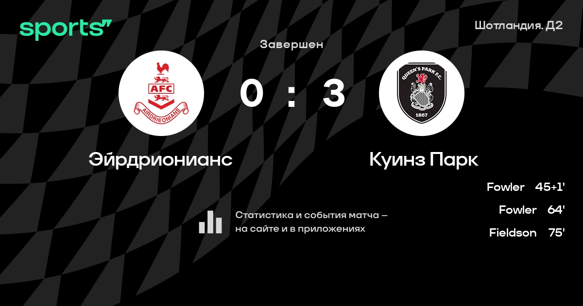 Эйрдрионианс – Куинз Парк: Куинз Парк не проигрывает в 5 из 7 последних матчей против этого соперника в гостях
