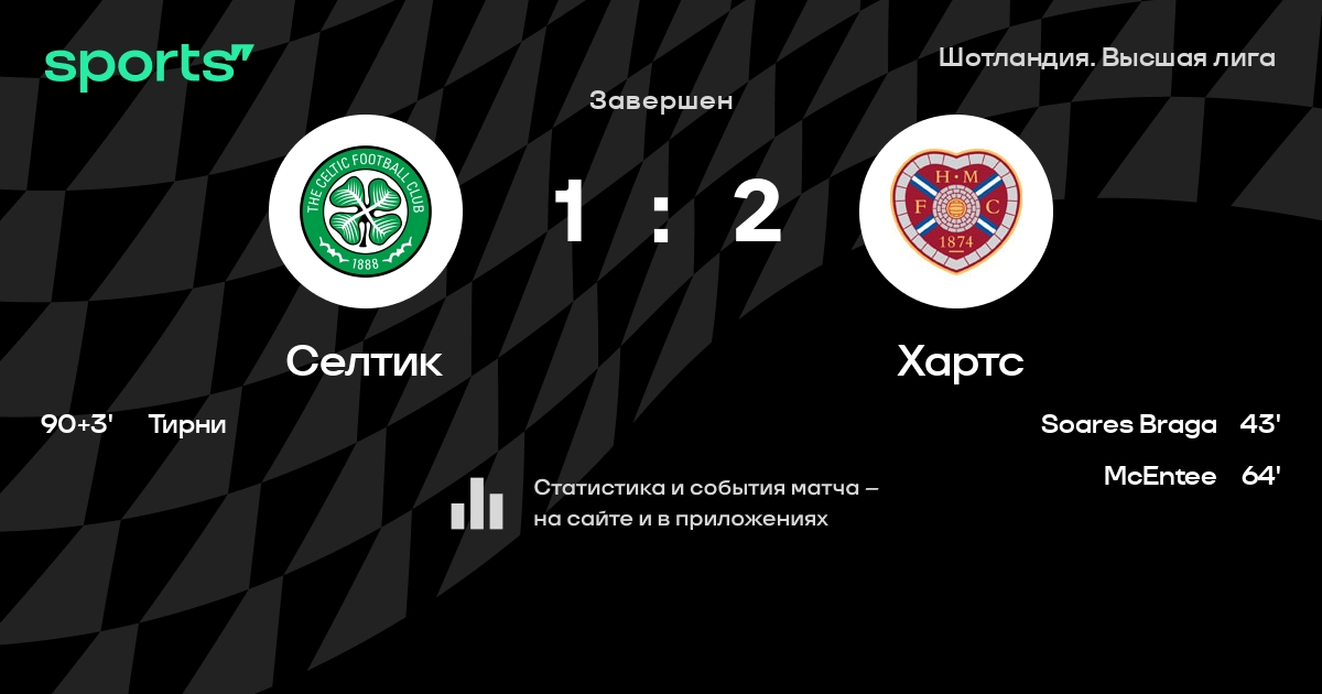 Премьершип: шансы Селтика и Хартса на победу в матче 16-го тура чемпионата Шотландии