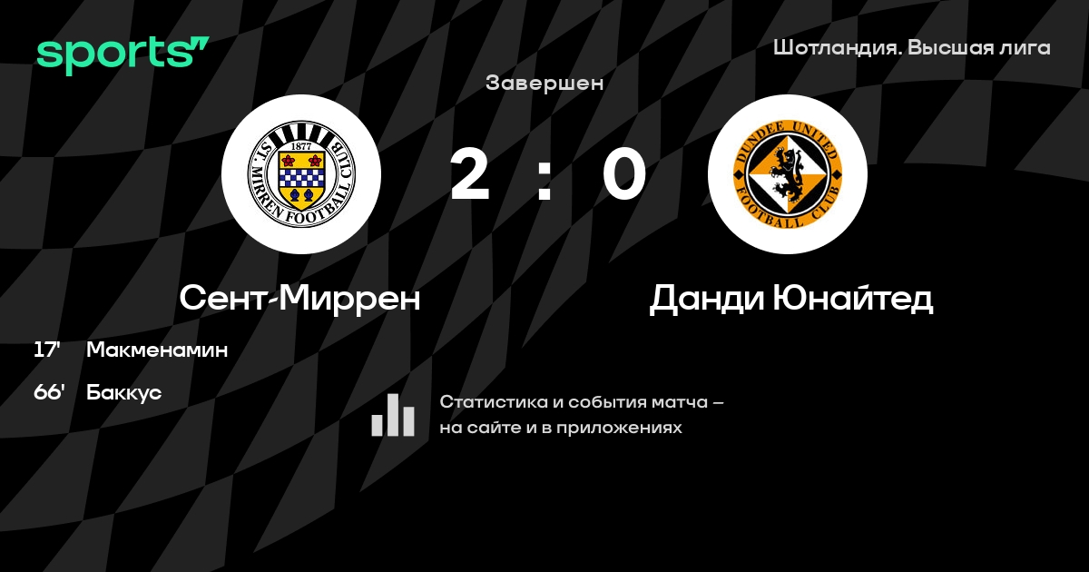 Премьершип: шансы «Сент-Миррена» и «Данди Юнайтед» на победу в матче тура Премьершипа