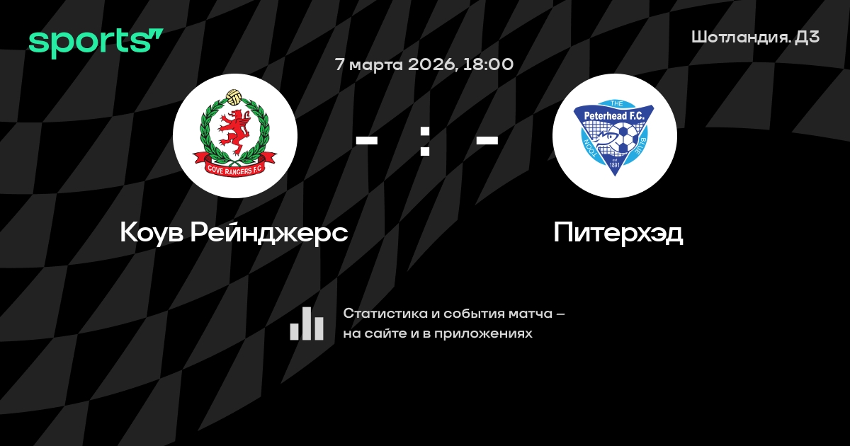 Коув Рейнджерс – Питерхэд: коэффициенты