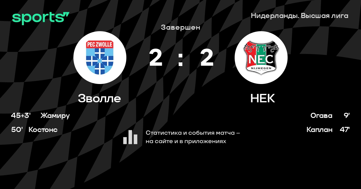 Эредивизи: шансы Зволле и НЕК на победу в матче 10-го тура чемпионата Нидерландов
