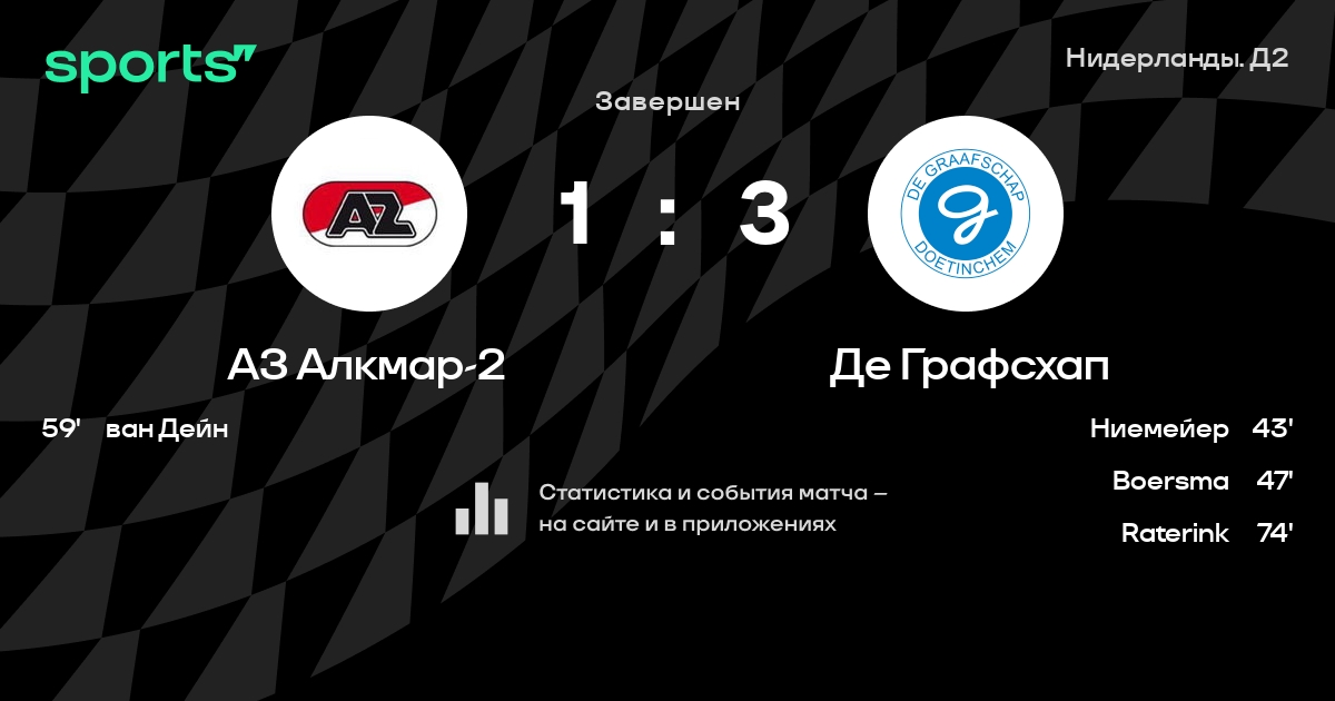 Результат прошлой игры в турнире «Первый дивизион»: Дордрехт – АЗ Алкмар-2 1:1. После 6 туров АЗ Алкмар-2 набирает 4 очков и занимает 18 место в турнире. Лучший бомбардир команды – Сем ван Дейн: он забил 2 в 6 матчах. В последних 5 играх АЗ Алкмар-2 забивает 6 голов. В последних 5 играх АЗ Алкмар-2 пропускает 7 голов.