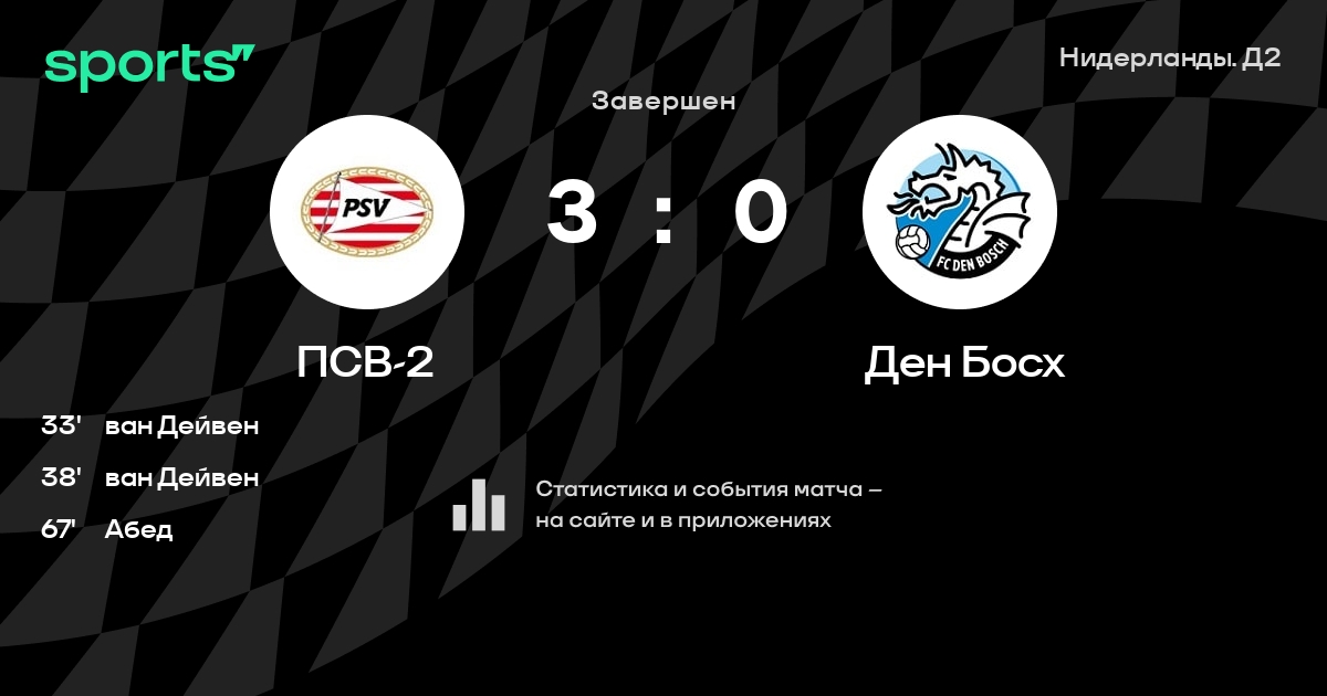 Результат прошлой игры в турнире «Первый дивизион»: Маастрихт – Ден Босх 2:4. После 5 туров Ден Босх набирает 10 очков и занимает 8 место в турнире. Лучший бомбардир команды – Кевен Монзиало: он забил 4 в 6 матчах. В 7 последних матчах в турнире «Первый дивизион» Ден Босх обязательно забивает. Ден Босх пропускает в 4 последних матчах в турнире «Первый дивизион». В последних 5 играх Ден Босх забивает 14 голов. В последних 5 играх Ден Босх пропускает 12 голов.