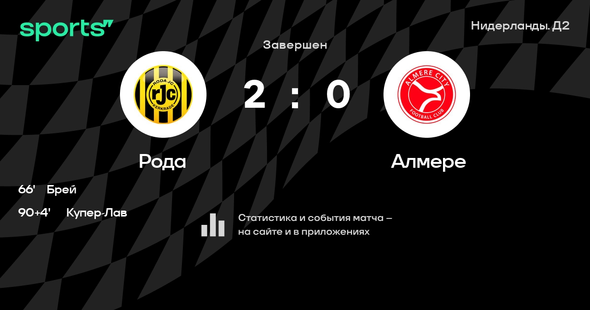 Рода – Алмере: Алмере не проигрывает в 8 из 10 последних матчей против этого соперника