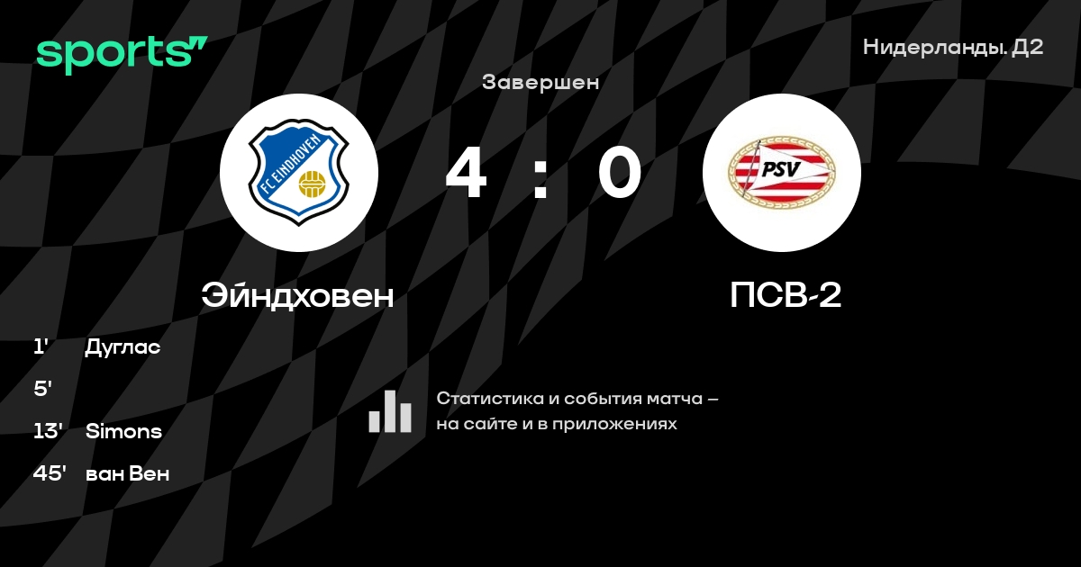 Эйндховен – ПСВ-2: Эйндховен не проигрывает в 6 из 8 последних матчей против этого соперника