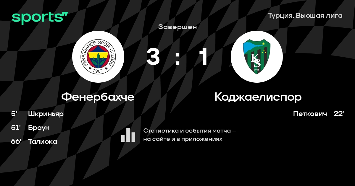 Фенербахче – Коджаелиспор: Фенербахче не проигрывает в 12 последних матчах против этого соперника