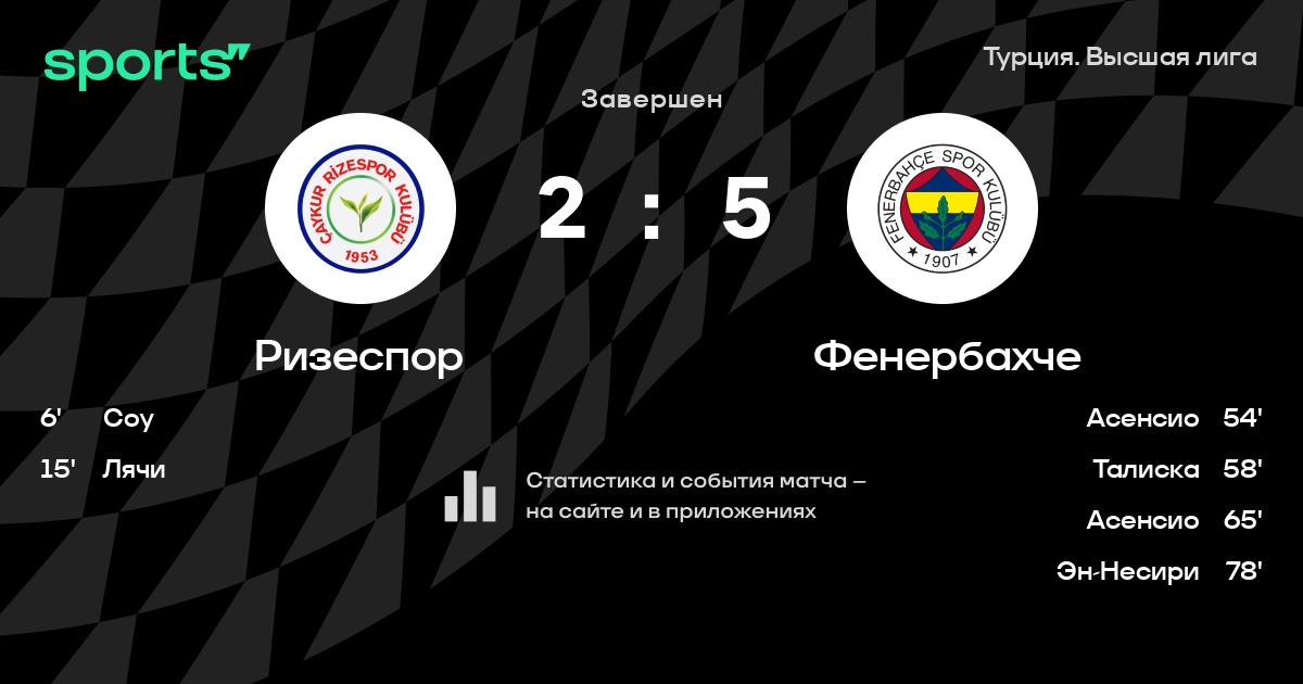 Ризеспор – Фенербахче: Фенербахче побеждает в 12 последних очных матчах