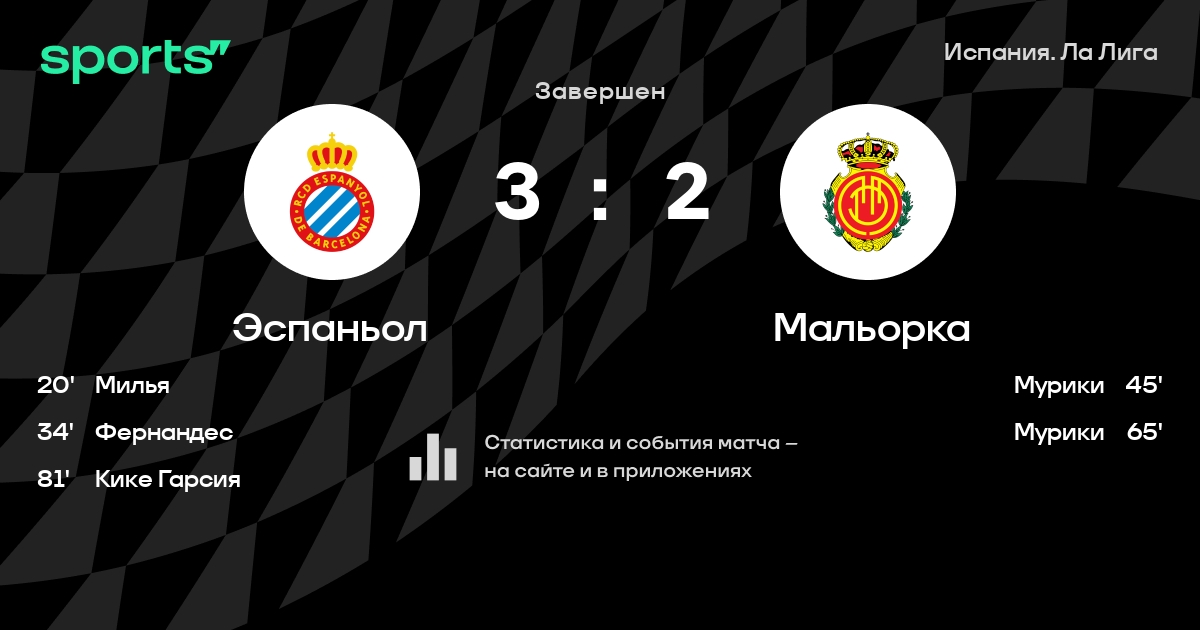 Чемпионат Испании. «Эспаньол» вырвал победу над «Мальоркой»