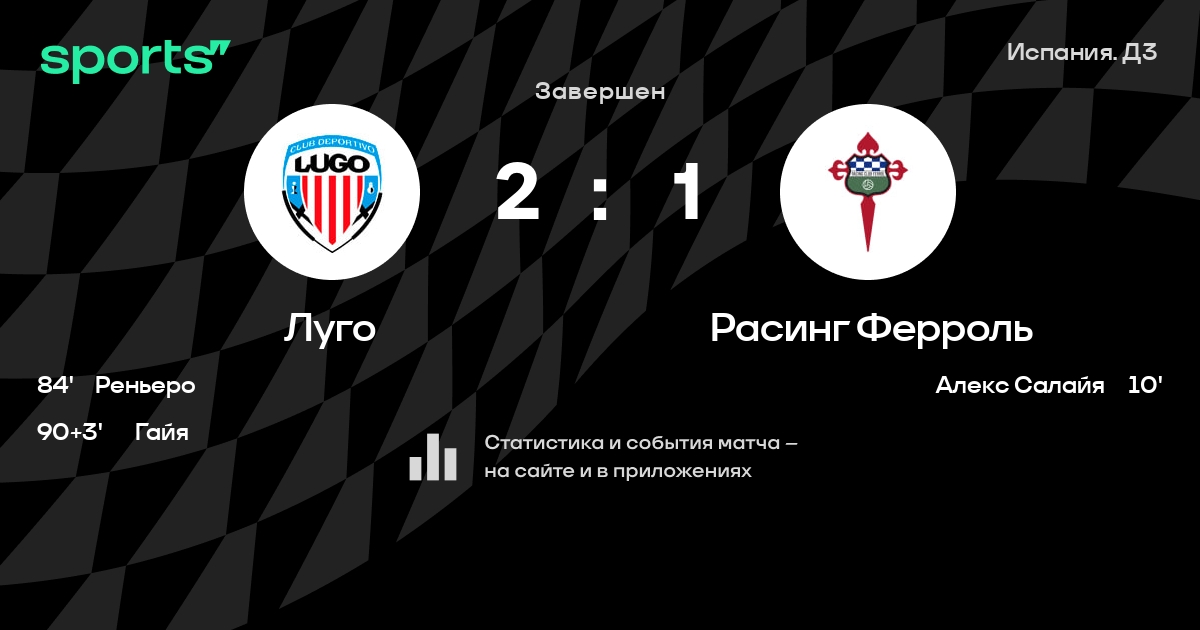 Результат прошлой игры в турнире «Первый дивизион RFEF»: Самора – Луго 1:0. После 3 туров Луго набирает 1 очков и занимает 19 место в турнире. Луго не может выиграть в 4 последних матчах в рамках турнира «Первый дивизион RFEF». В последних 5 играх Луго забивает 4 голов. В последних 5 играх Луго пропускает 6 голов.