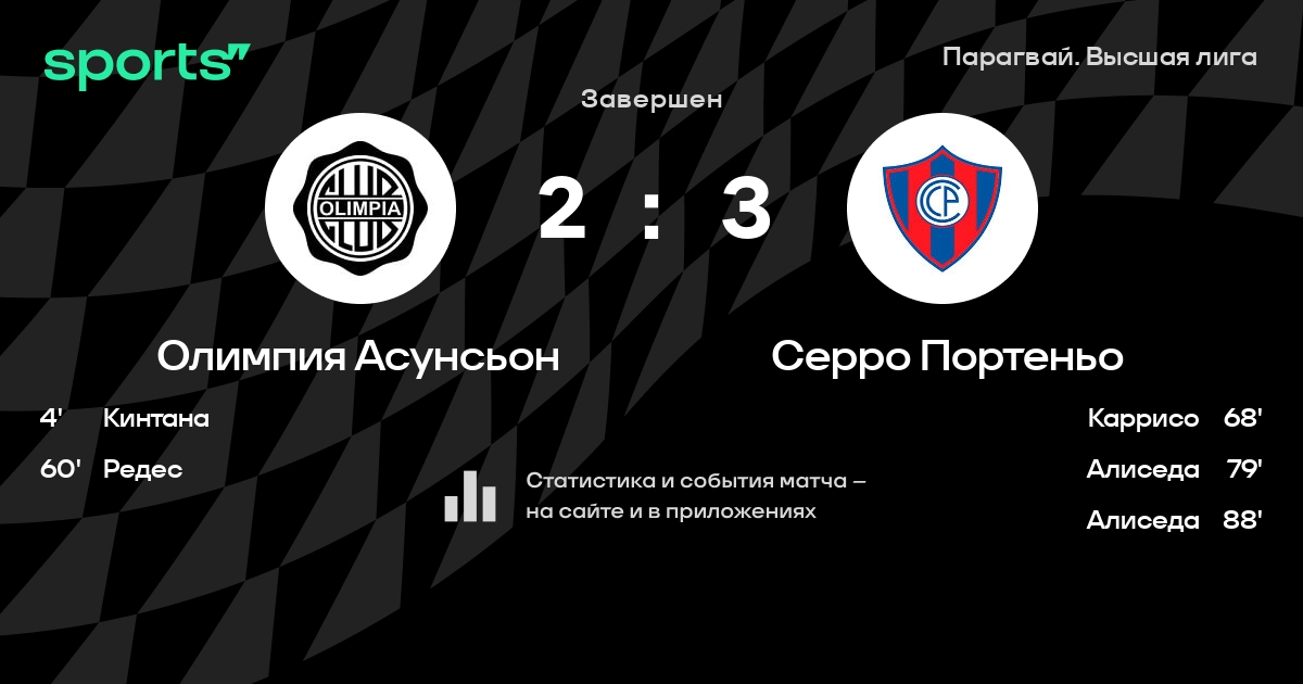 Олимпия Асунсьон – Серро Портеньо: Олимпия Асунсьон побеждает в 3 последних очных матчах