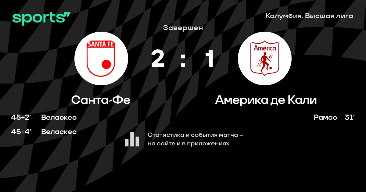 Санта-Фе – Америка де Кали: коэффициенты