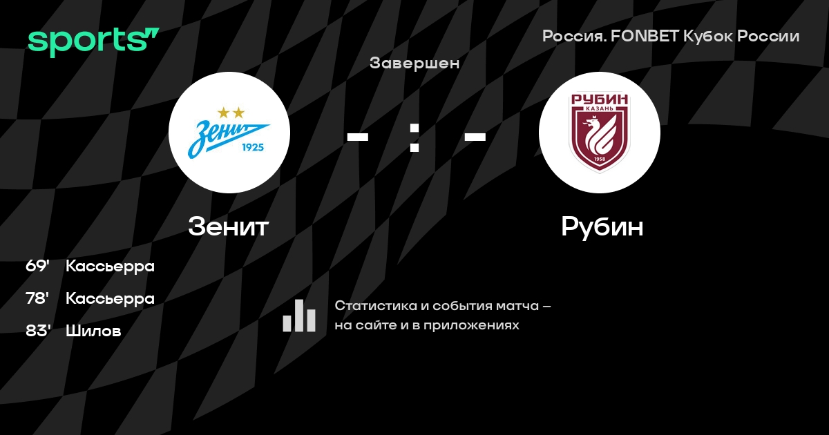Кубок России: шансы «Зенита» и «Рубина» на победу в матче 2 тура Пути РПЛ
