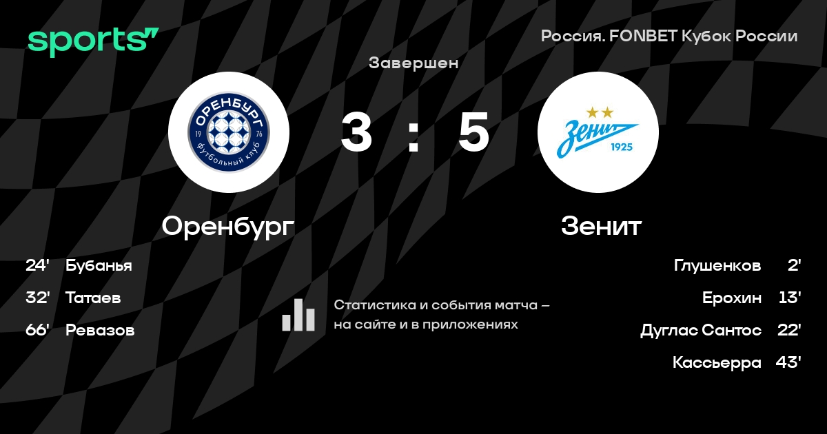 Оренбург – Зенит: коэффициенты