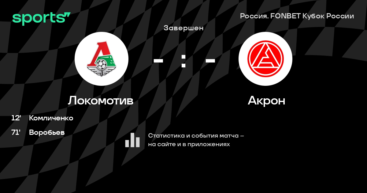 Кубок России: шансы «Локомотива» и «Акрона» на победу в матче 3 тура Пути РПЛ