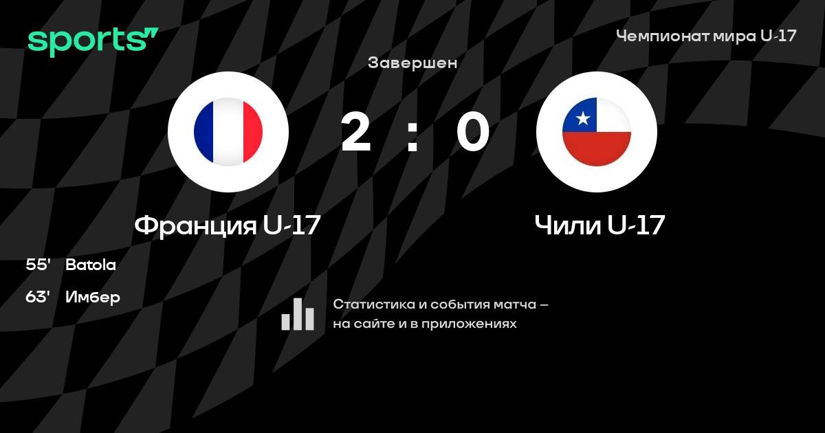 Чили U-17 не выигрывает в 5 последних матчах в гостях в турнире «Чемпионат мира U-17»