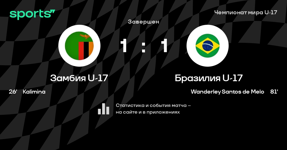 Трансляция Замбия U-17 - Бразилия U-17