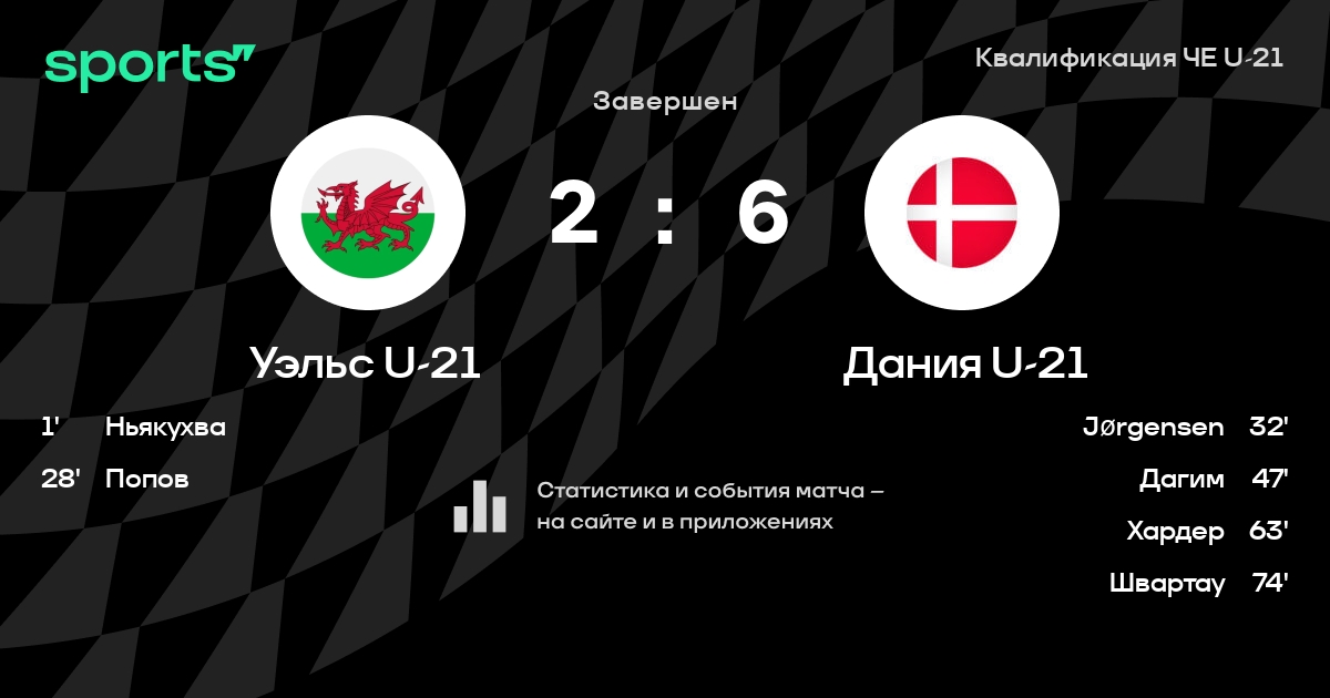 Трансляция Уэльс U-21 - Дания U-21