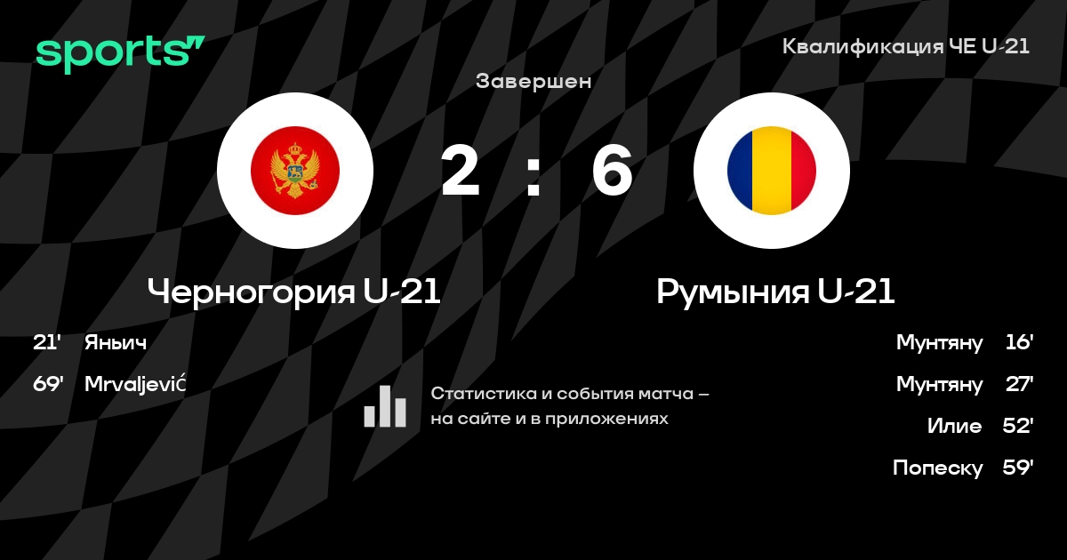 Трансляция Черногория U-21 - Румыния U-21