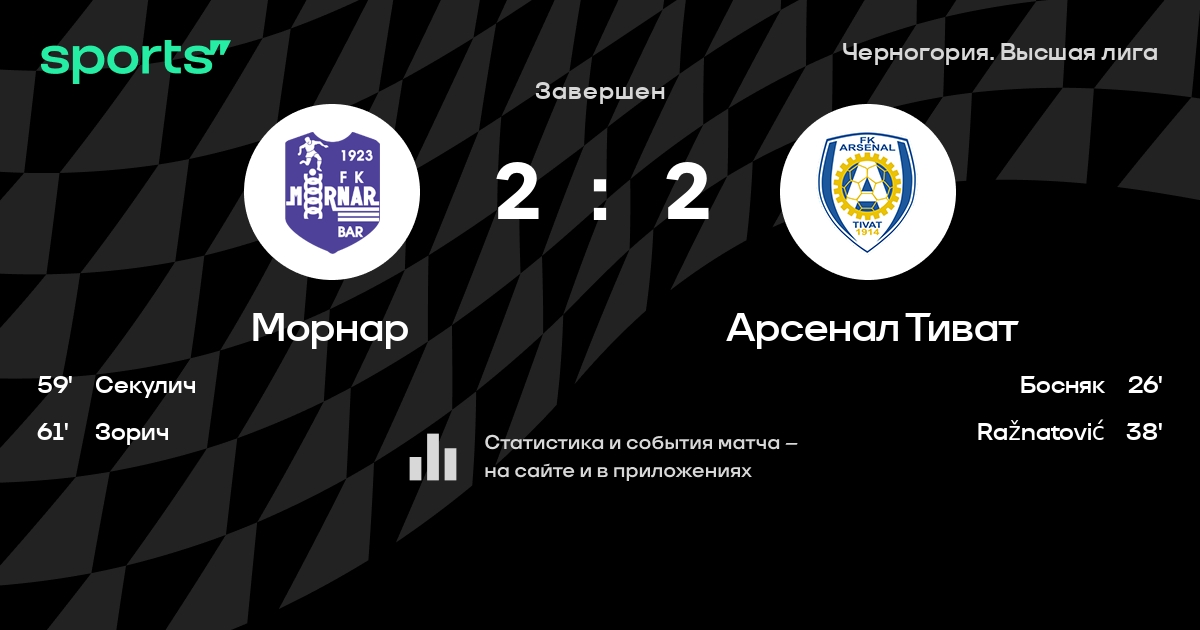 Морнар – Арсенал Тиват: Морнар не проигрывает в 6 из 8 последних матчей против этого соперника