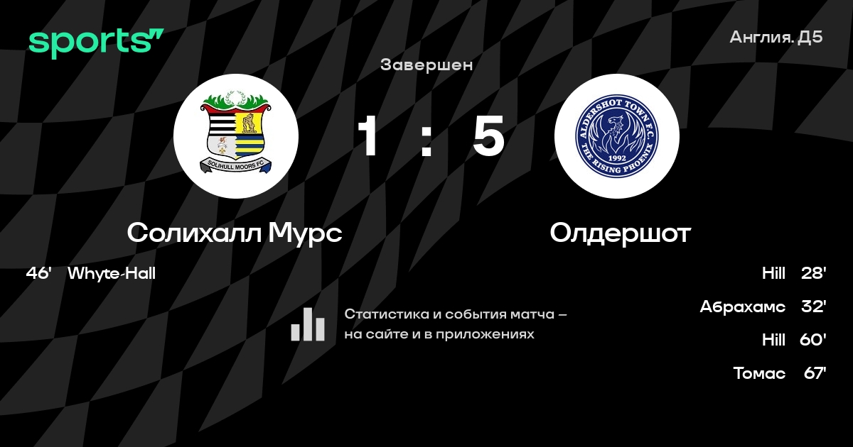 Результат прошлой игры в турнире «Д5. Национальная лига»: Карлайл Юнайтед – Солихалл Мурс 1:1. После 3 туров Солихалл Мурс набирает 3 очков и занимает 13 место в турнире. Лучший бомбардир команды – Джеймс Кларк: он забил 1 в 3 матчах. Солихалл Мурс играет вничью в 4 последних матчах в рамках турнира «Д5. Национальная лига». В последних 5 играх Солихалл Мурс забивает 7 голов. В последних 5 играх Солихалл Мурс пропускает 8 голов.