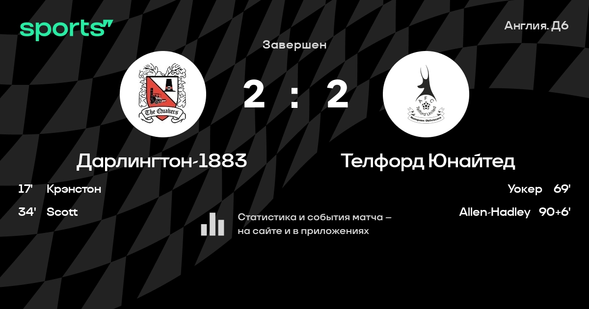 Дарлингтон-1883 – Телфорд Юнайтед: Дарлингтон-1883 забивает в 8 из 10 последних матчей против этого соперника