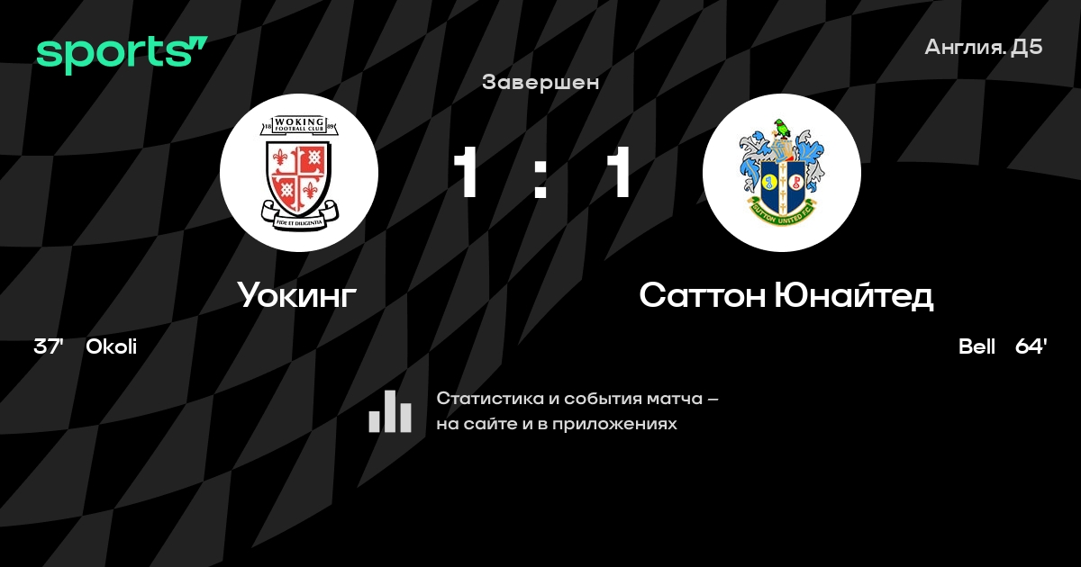 Уокинг – Саттон Юнайтед: Саттон Юнайтед не проигрывает в 7 последних матчах против этого соперника в турнире «Д5. Национальная лига»