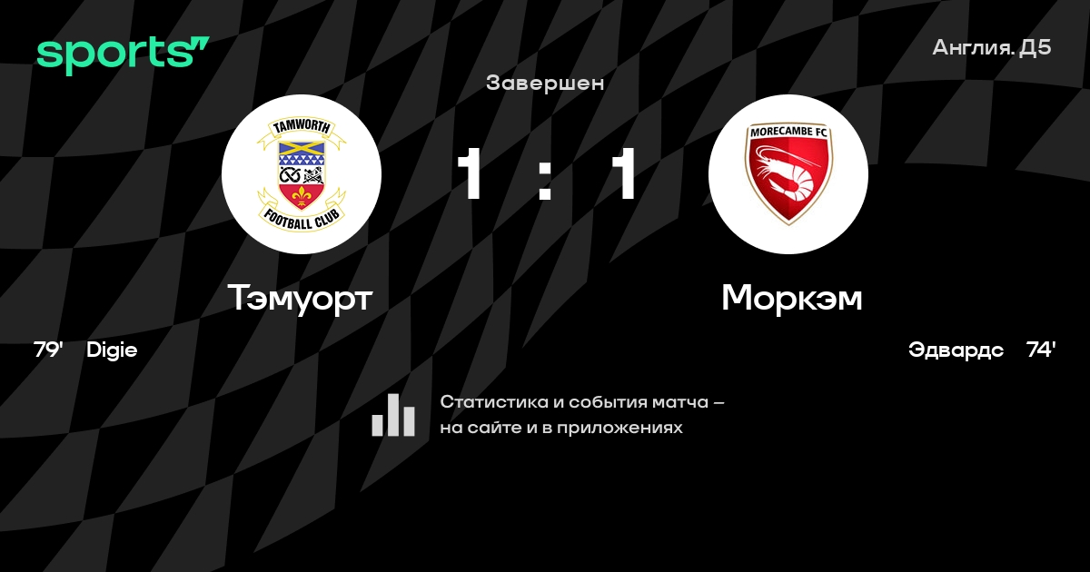 Тэмуорт – Моркэм: Моркэм не пропускает в 7 последних матчах против этого соперника