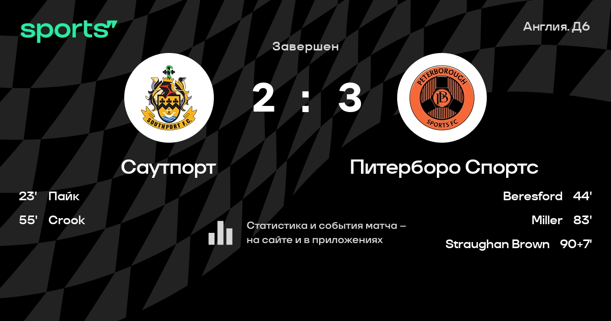 Результат прошлой игры в турнире «Д6. Национальная конференция»: Дарлингтон-1883 – Саутпорт 2:0. После 12 туров Саутпорт набирает 8 очков и занимает 23 место в турнире. Лучший бомбардир команды – Артур Гнауа: он забил 3 в 11 матчах. Саутпорт пропускает в 4 последних матчах в турнире «Д6. Национальная конференция». В последних 5 играх Саутпорт забивает 4 голов. В последних 5 играх Саутпорт пропускает 9 голов.
