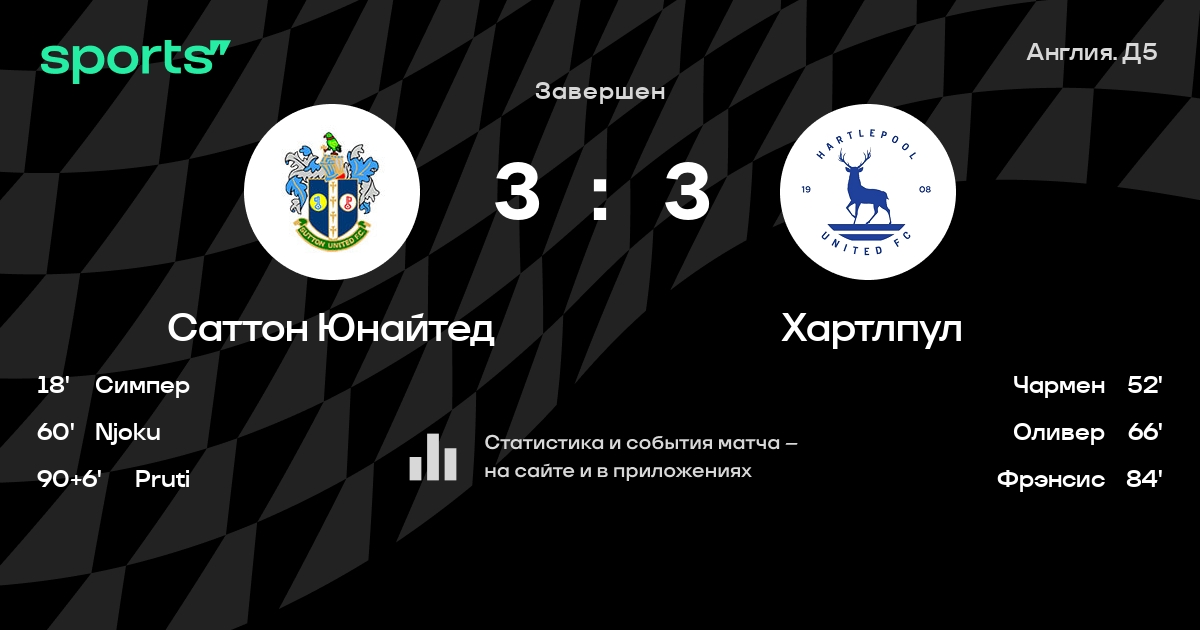Саттон Юнайтед – Хартлпул: Хартлпул забивает в 3 последних матчах против этого соперника