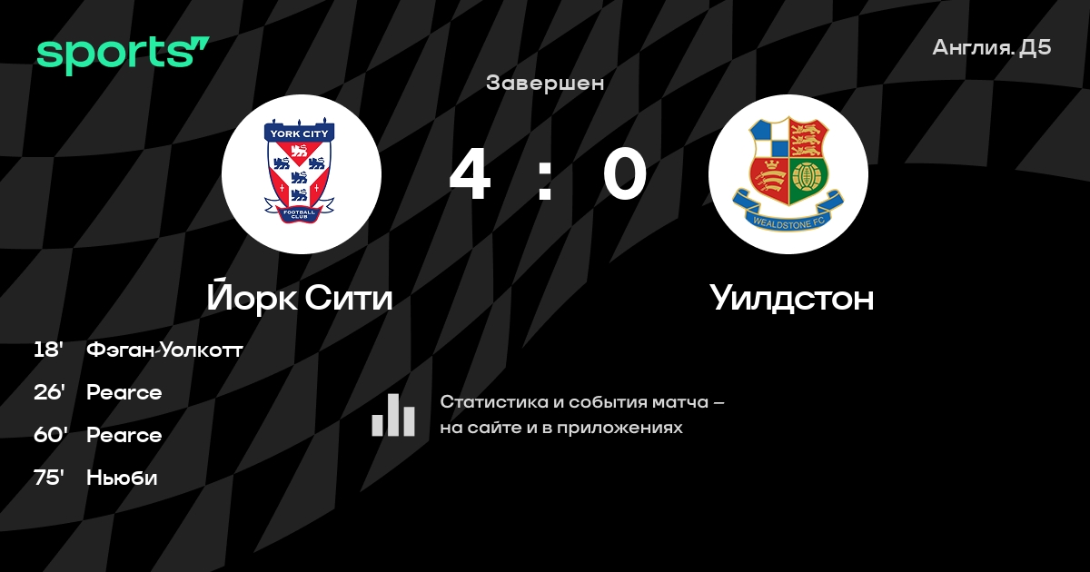 Результат прошлой игры в турнире «Д5. Национальная лига»: Хартлпул – Йорк Сити 1:2. После 12 туров Йорк Сити набирает 22 очков и занимает 7 место в турнире. Лучший бомбардир команды – O. Pearce: он забил 7 в 12 матчах. В 4 последних матчах в турнире «Д5. Национальная лига» Йорк Сити обязательно забивает. Йорк Сити пропускает в 3 последних матчах в турнире «Д5. Национальная лига». В последних 5 играх Йорк Сити забивает 11 голов. В последних 5 играх Йорк Сити пропускает 6 голов.