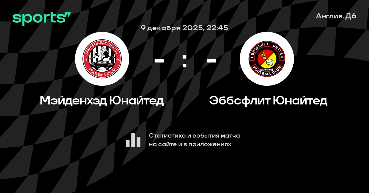 Результат прошлой игры в турнире «Д6. Национальная конференция»: Мэйденхэд Юнайтед – Хорнчерч 2:0. После 20 туров Мэйденхэд Юнайтед набирает 30 очков и занимает 10 место в турнире. Лучший бомбардир команды – L. Dulson: он забил 7 в 21 матчах. Мэйденхэд Юнайтед побеждает в 3 последних матчах в рамках турнира «Д6. Национальная конференция». В 3 последних матчах в турнире «Д6. Национальная конференция» Мэйденхэд Юнайтед обязательно забивает. Мэйденхэд Юнайтед не пропускает в 3 последних матчах в турнире «Д6. Национальная конференция». В последних 5 играх Мэйденхэд Юнайтед забивает 11 голов. В последних 5 играх Мэйденхэд Юнайтед пропускает 3 голов.