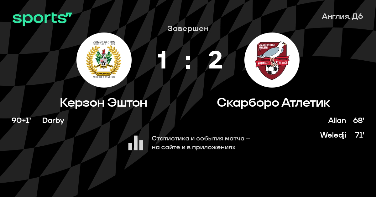 Керзон Эштон – Скарборо Атлетик: Керзон Эштон побеждает в 3 последних очных матчах