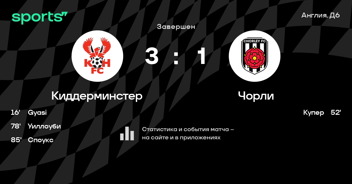 Киддерминстер – Чорли: Чорли побеждает в 3 последних очных матчах