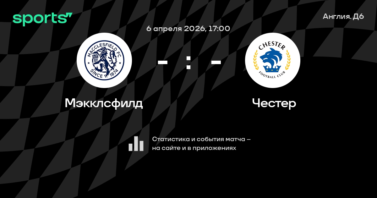 Результат прошлой игры в турнире «Д6. Национальная конференция»: Мэкклсфилд – Скарборо Атлетик 1:1. После 17 туров Мэкклсфилд набирает 26 очков и занимает 14 место в турнире. Лучший бомбардир команды – Дэниэл Эллиотт: он забил 13 в 19 матчах. Мэкклсфилд не может выиграть в 3 последних матчах в рамках турнира «Д6. Национальная конференция». В 7 последних матчах в турнире «Д6. Национальная конференция» Мэкклсфилд обязательно забивает. Мэкклсфилд пропускает в 4 последних матчах в турнире «Д6. Национальная конференция». В последних 5 играх Мэкклсфилд забивает 7 голов. В последних 5 играх Мэкклсфилд пропускает 8 голов.