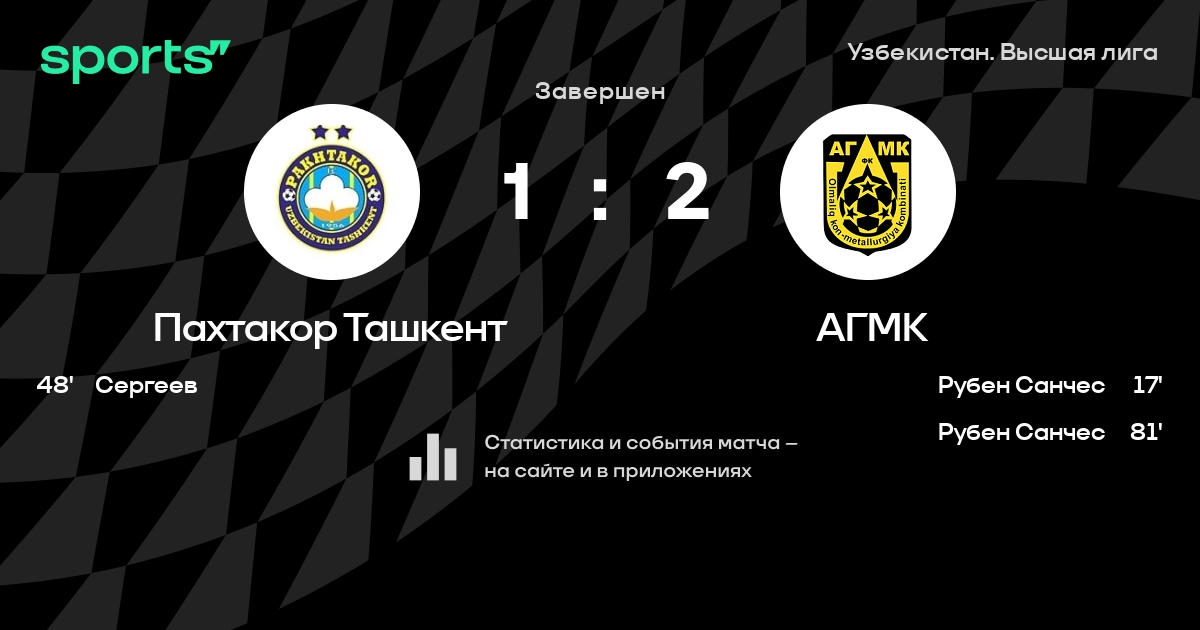 Пахтакор Ташкент – АГМК: АГМК забивает в 6 последних матчах против этого соперника