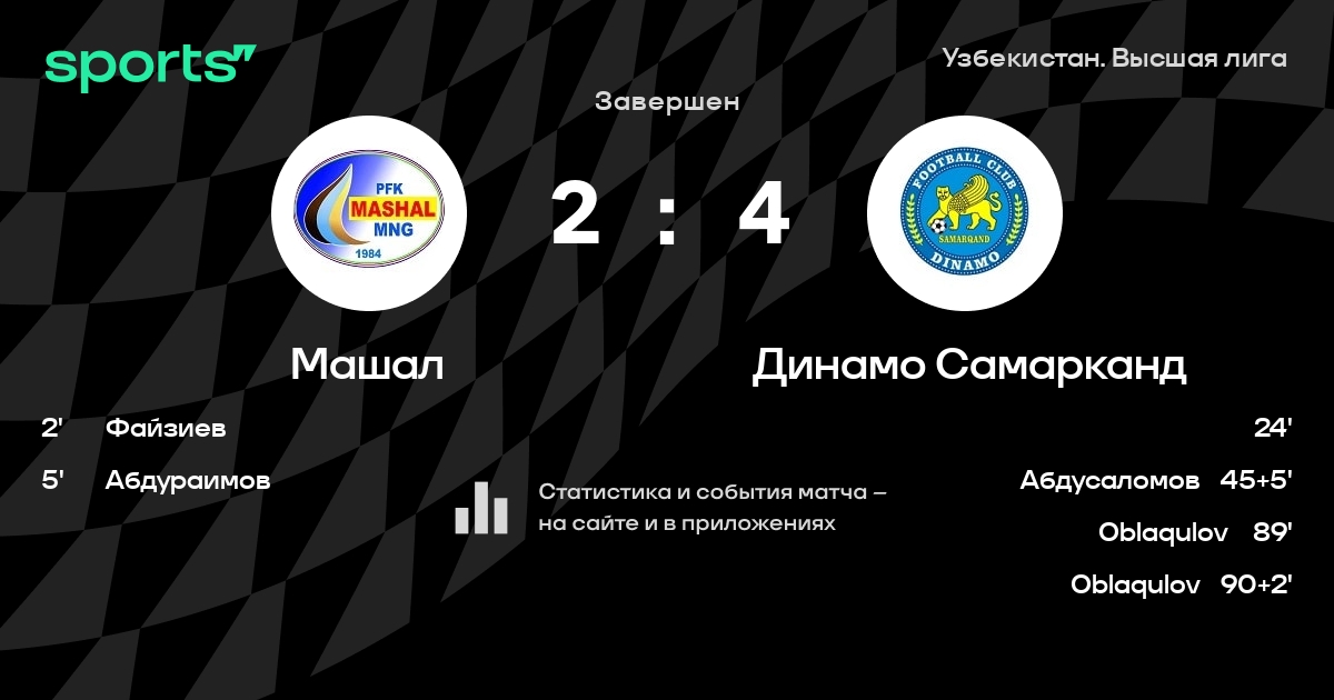 Результат прошлой игры в турнире «ПФЛ»: Машал – Пахтакор Ташкент 0:1. После 16 туров Машал набирает 15 очков и занимает 13 место в турнире. Лучший бомбардир команды – Хумоюн Муртазоев: он забил 5 в 15 матчах. Машал проигрывает в 4 последних матчах в рамках турнира «ПФЛ». В 3 последних матчах в турнире «ПФЛ» Машал обязательно забивает. Машал пропускает в 4 последних матчах в турнире «ПФЛ». В последних 5 играх Машал забивает 2 голов. В последних 5 играх Машал пропускает 11 голов.