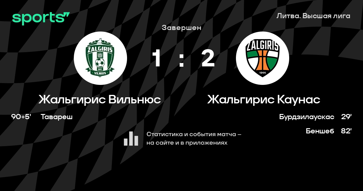 | 1 | Жальгирис Каунас | 36 | 22 | 9 | 5 | 67 | 26 | +41 | 75 | ||