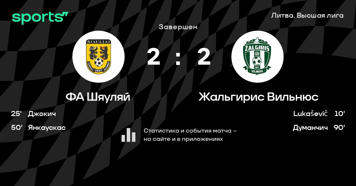 ФА Шяуляй – Жальгирис Вильнюс: Жальгирис Вильнюс не проигрывает в 8 из 10 последних матчей против этого соперника