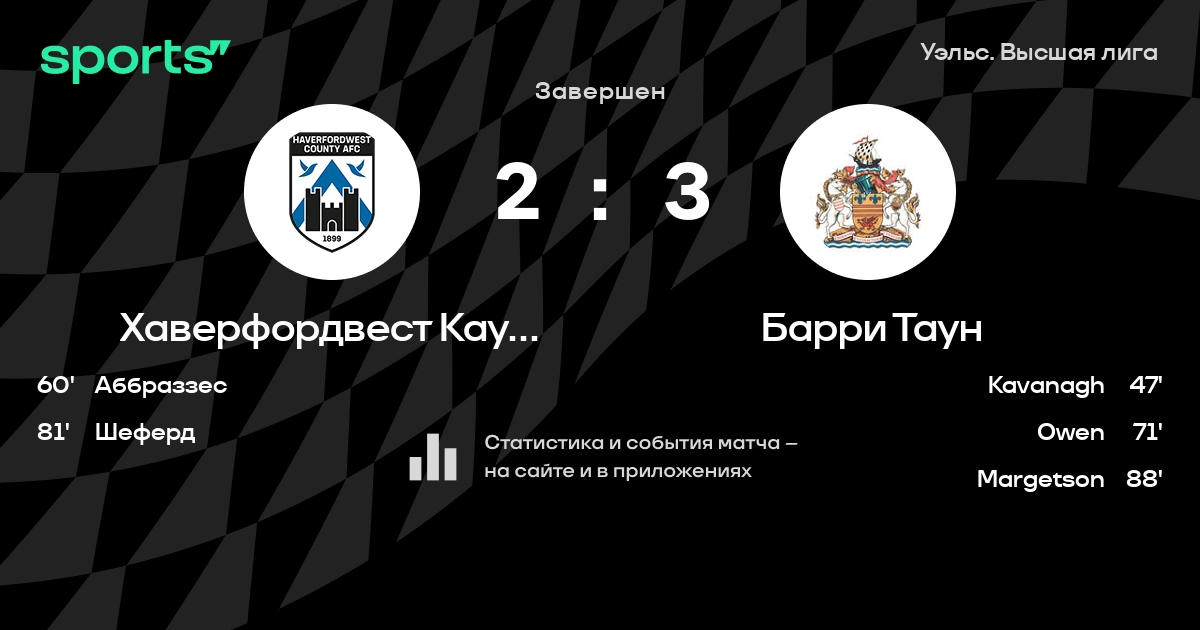 Результат прошлой игры в турнире «Премьер-лига»: Хаверфордвест Каунти – Гап Конназ Куэй 1:3. После 7 туров Хаверфордвест Каунти набирает 5 очков и занимает 11 место в турнире. Лучший бомбардир команды – Бен Амун: он забил 4 в 7 матчах. Хаверфордвест Каунти проигрывает в 3 последних матчах в рамках турнира «Премьер-лига». Хаверфордвест Каунти пропускает в 4 последних матчах в турнире «Премьер-лига». В последних 5 играх Хаверфордвест Каунти забивает 6 голов. В последних 5 играх Хаверфордвест Каунти пропускает 13 голов.