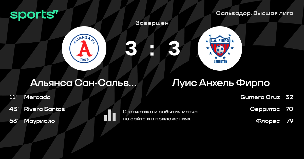 Альянса Сан-Сальвадор – Луис Анхель Фирпо: коэффициенты