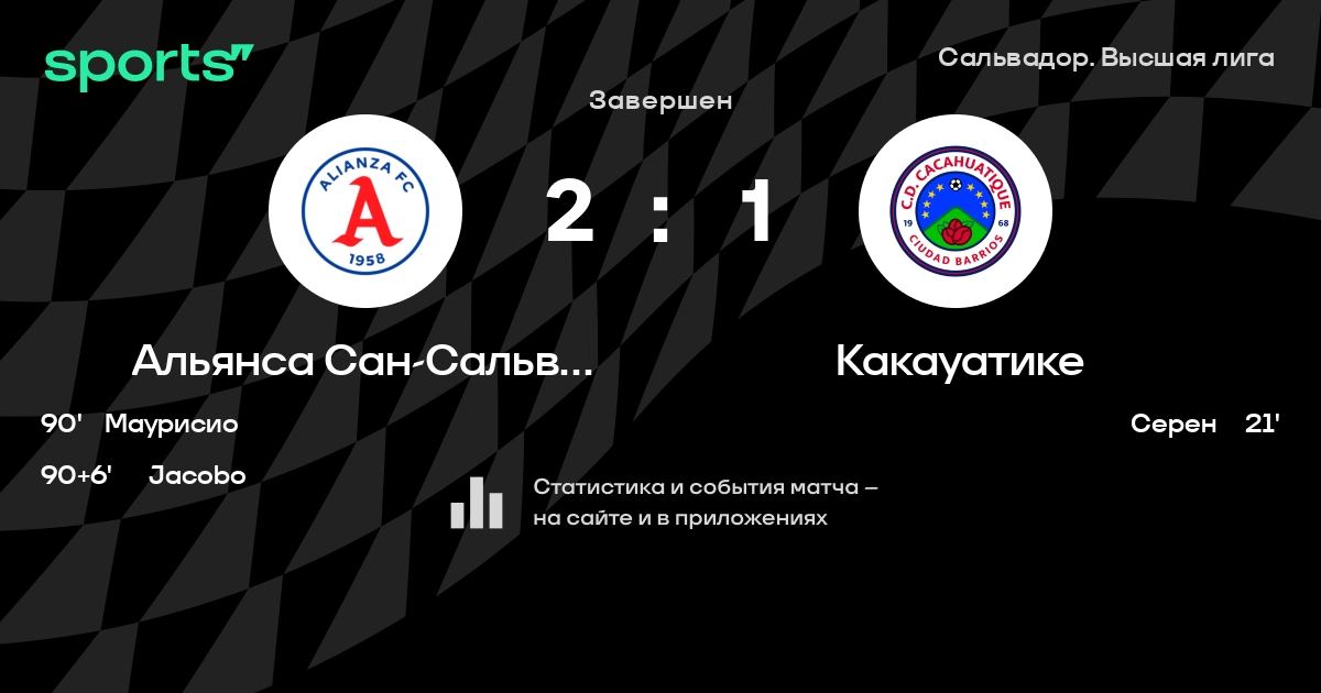 Результат прошлой игры в турнире «Высшая лига»: Интер ФА – Альянса Сан-Сальвадор 0:1. Лучший бомбардир команды – L. Tobar: он забил 3 в 5 матчах. Альянса Сан-Сальвадор побеждает в 7 последних матчах в рамках турнира «Высшая лига». В 7 последних матчах в турнире «Высшая лига» Альянса Сан-Сальвадор обязательно забивает. В последних 5 играх Альянса Сан-Сальвадор забивает 8 голов. В последних 5 играх Альянса Сан-Сальвадор пропускает 2 голов.