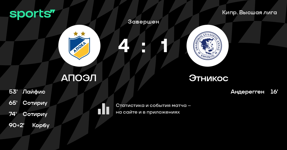 АПОЭЛ – Этникос: АПОЭЛ забивает в 10 последних матчах против этого соперника