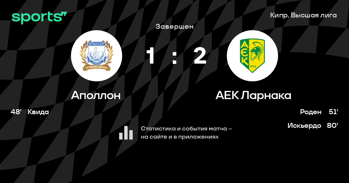 Аполлон – АЕК Ларнака: АЕК Ларнака не проигрывает в 5 из 7 последних матчей против этого соперника в турнире «Лига 1»