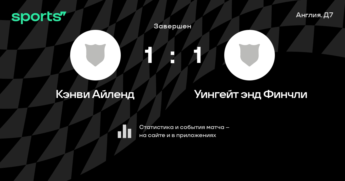 Кэнви Айленд – Уингейт энд Финчли: Уингейт энд Финчли не проигрывает в 5 из 7 последних матчей против этого соперника
